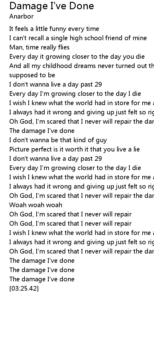 | [02:59.11] | Oh God, I'm scared that I never will repair the damage I've done |
