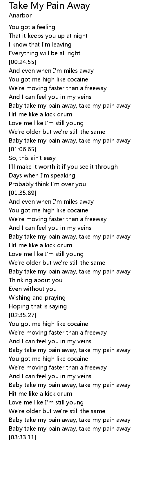 | [00:45.58] | Baby take my pain away, take my pain away |