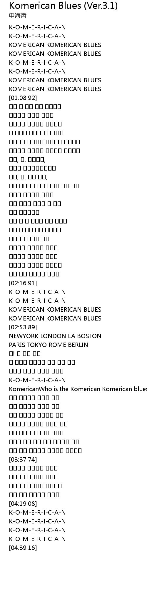 | [03:19.74] | KomericanWho is the Komerican Komerican blues |