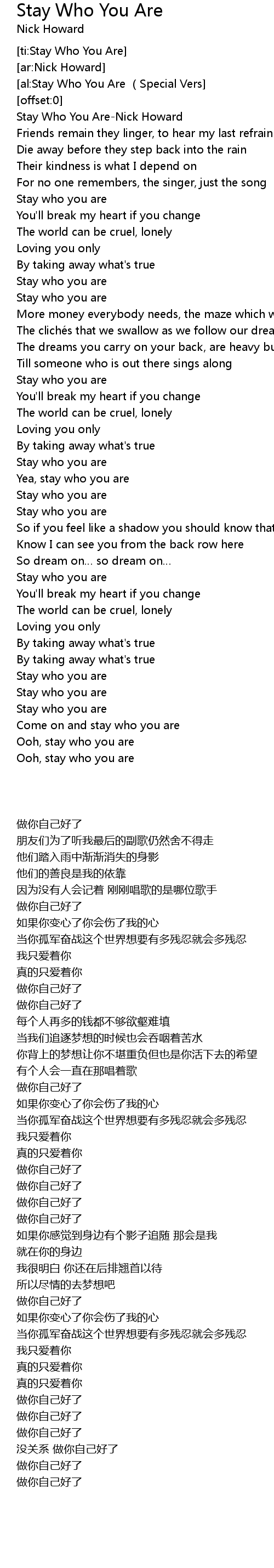 | [00:02.39] | Stay Who You Are-Nick Howard |