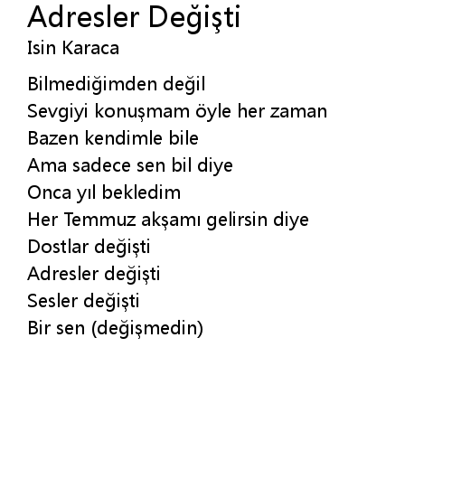 | Song | Adresler Değişti |