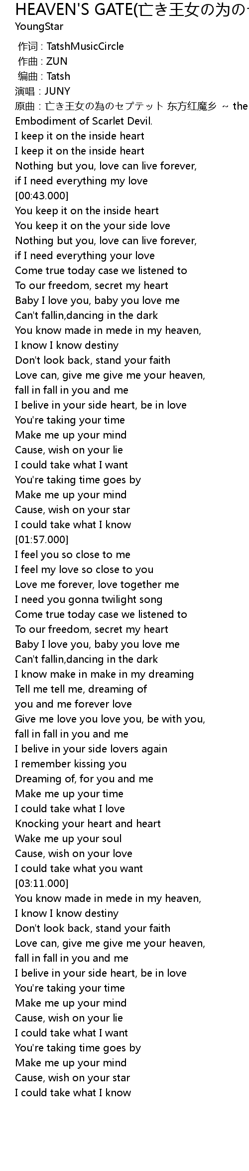 | Song | HEAVEN'S GATE(亡き王女の为のセプテット/东方红魔郷より) |