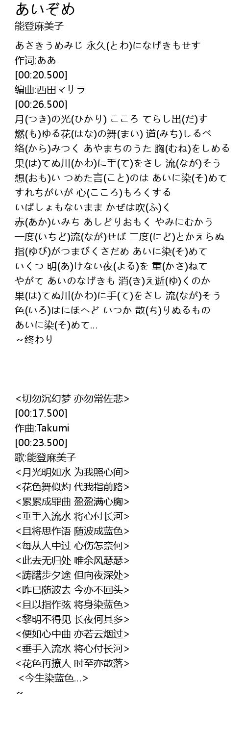| [00:01.120] | あさきうめみじ 永久(とわ)になげきもせす |