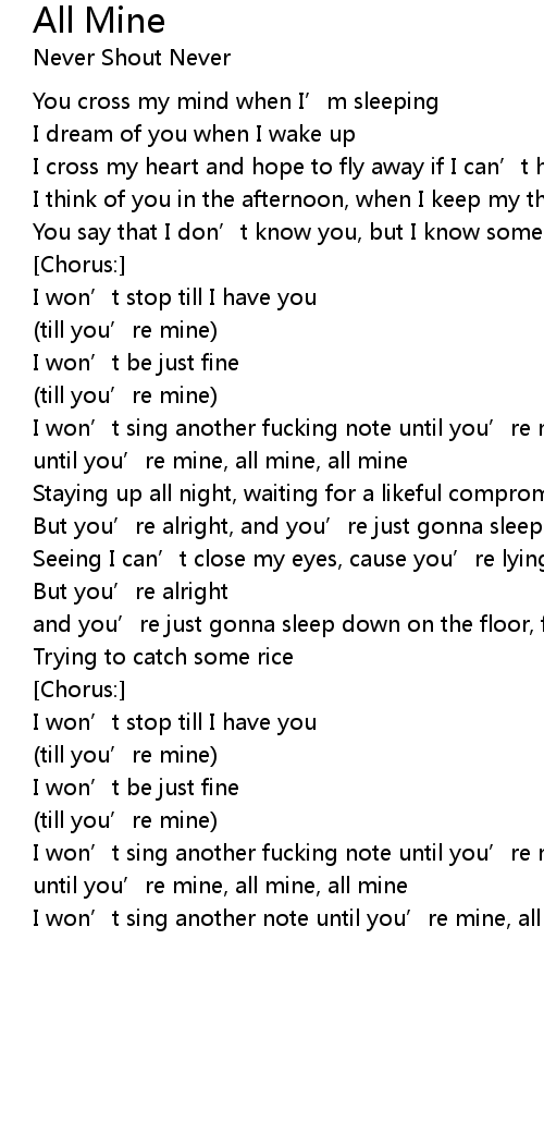 | I won' t sing another fucking note until you' re mine, all mine, all mine | |