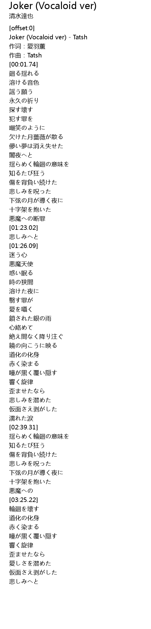 | [00:00.00] | Joker Vocaloid ver Tatsh |