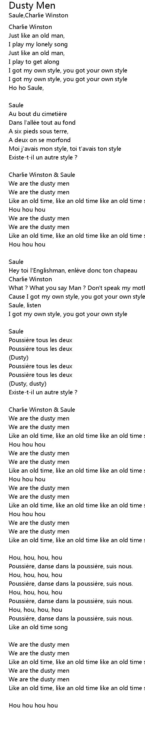 | Poussiè re, danse dans la poussiè re, suis nous. | |