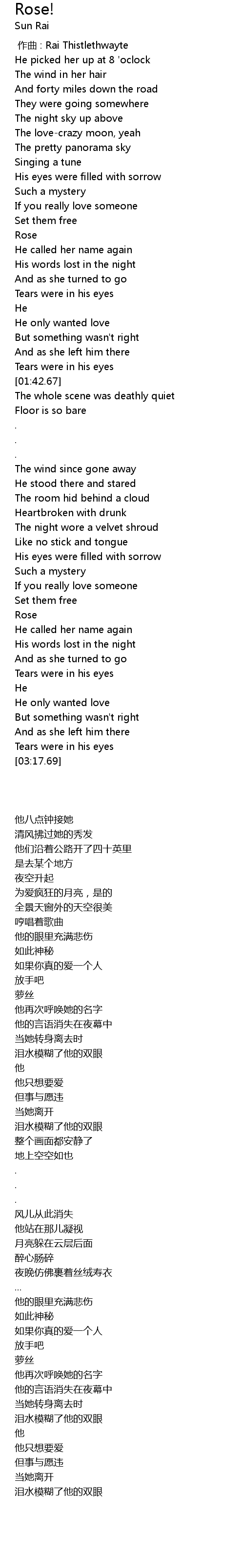 | [00:00.000] | zuò qǔ : Rai Thistlethwayte |