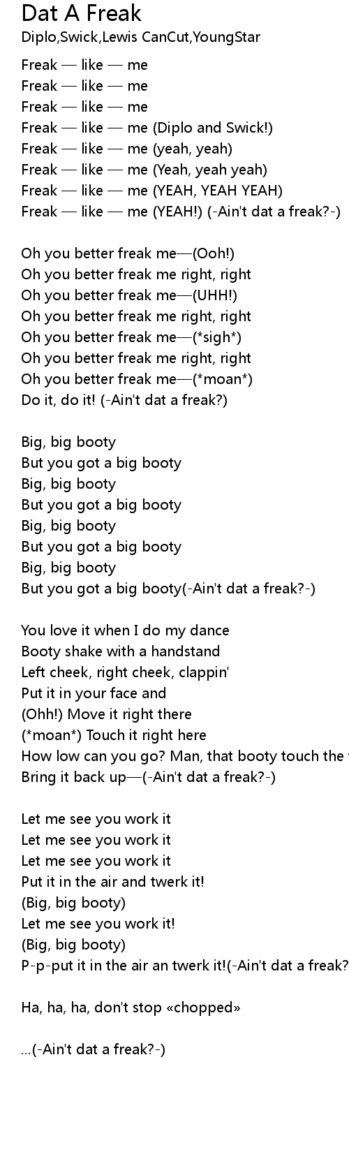 | Freak like me YEAH! Ain' t dat a freak? | |