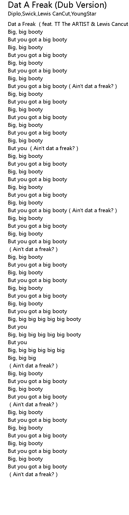 | Dat a Freak feat. TT The ARTIST Lewis Cancut Dub Version Diplo | |