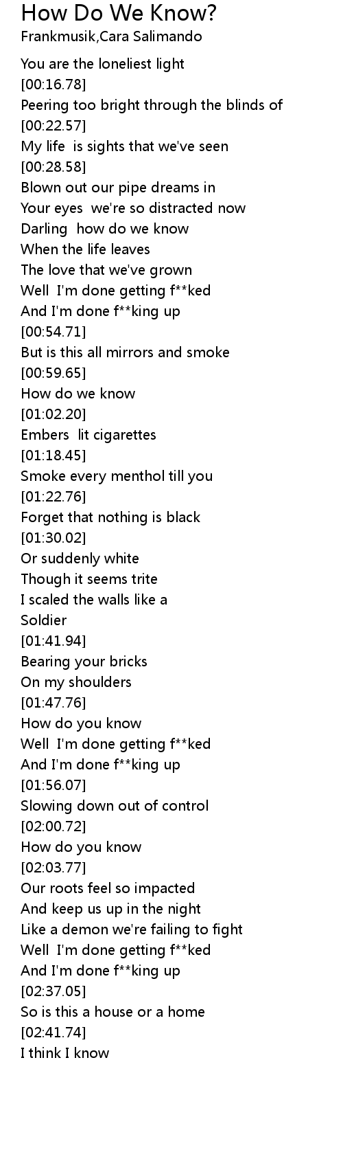 How Do We Know? Lyrics