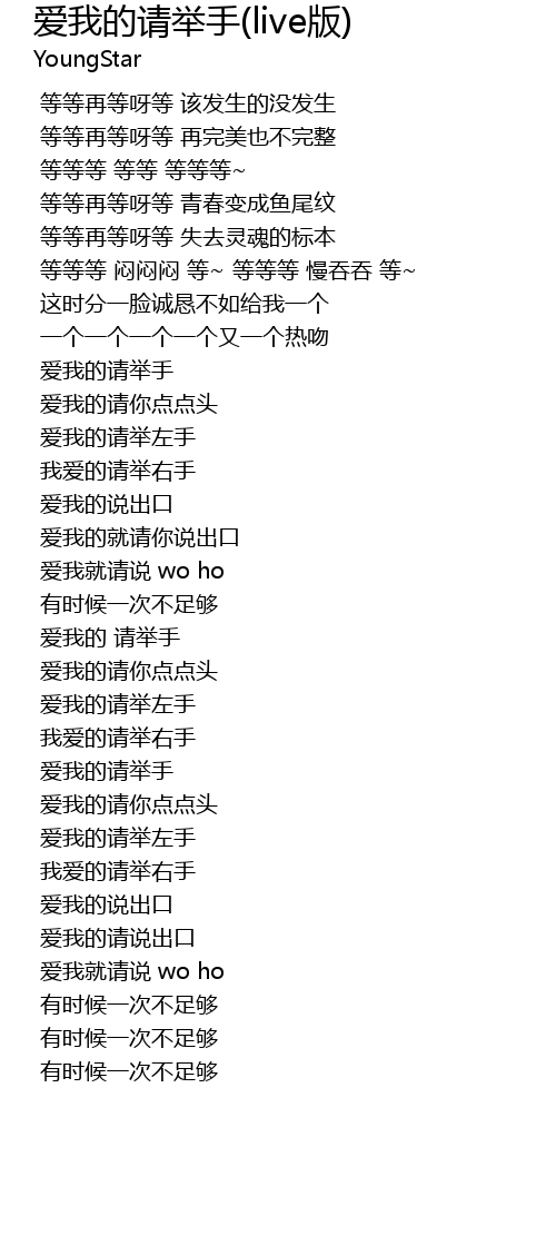 | [00:59.59] | ài wǒ de qǐng jǔ shǒu |