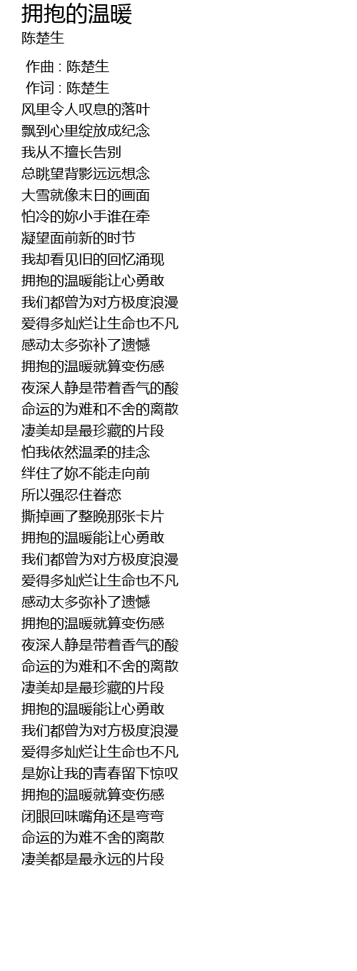 | [03:48.080] | 拥抱的温暖就算变伤感 |