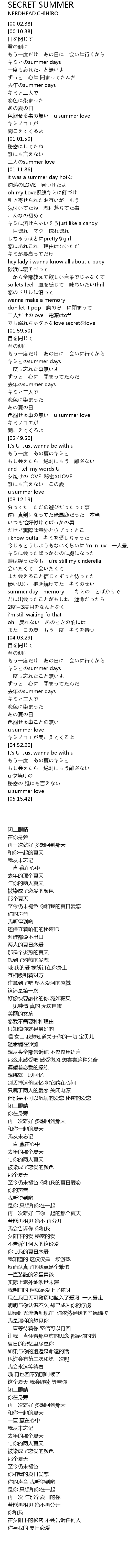 | [04:00.78] | また この夏 もう一度 キミを待つ |