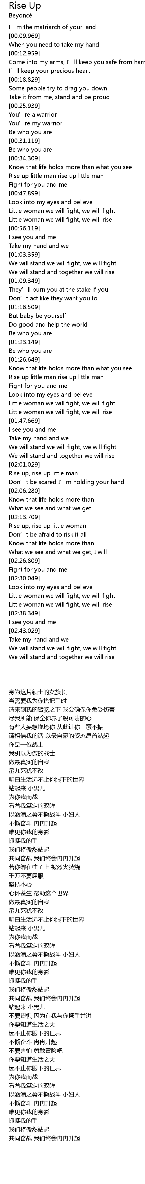 | [01:45.179] | Little woman we will fight, we will rise |