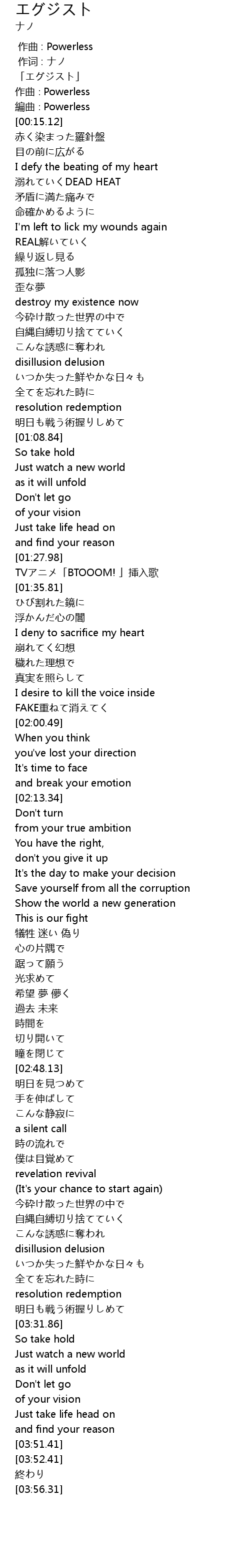 | [01:29.81] | TVアニメ「BTOOOM! 」挿入歌 |
