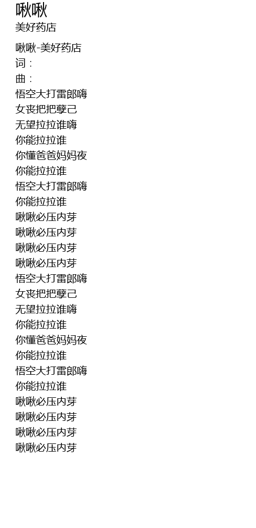 | [00:00.00] | 啾啾-美好药店 |