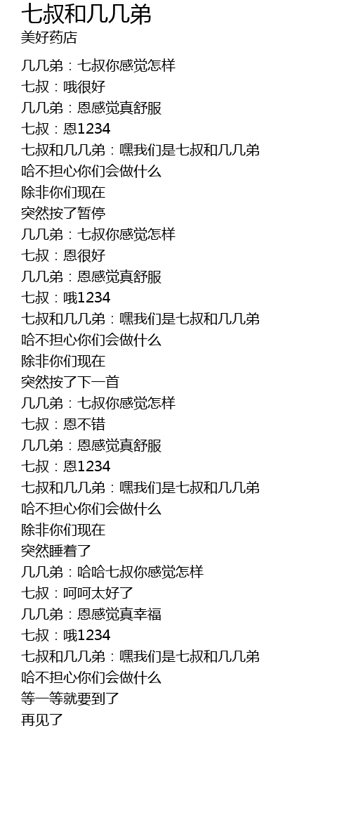| [00:54.150] | 七叔和几几弟:嘿我们是七叔和几几弟 |