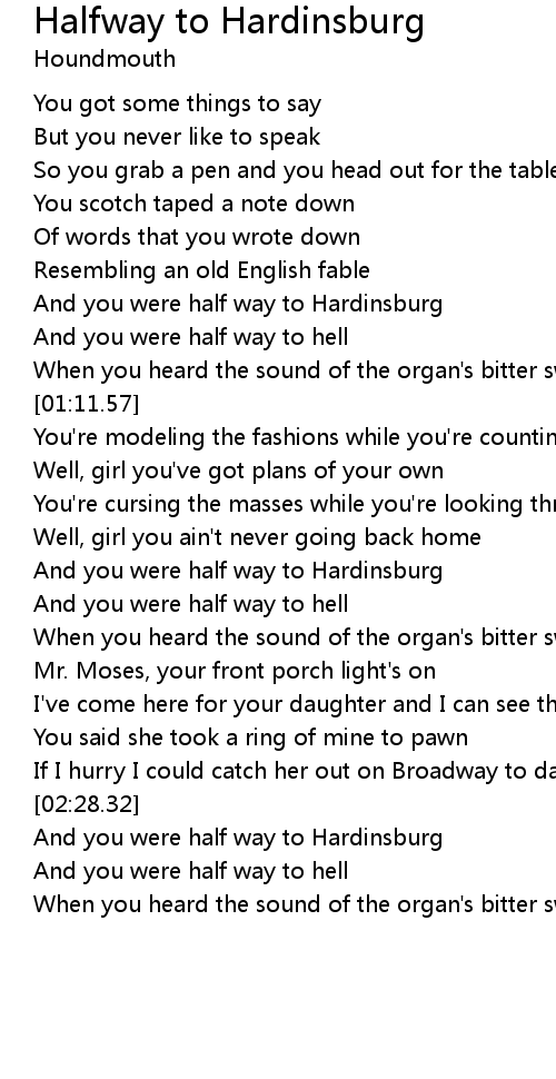 And you were half way to hell |