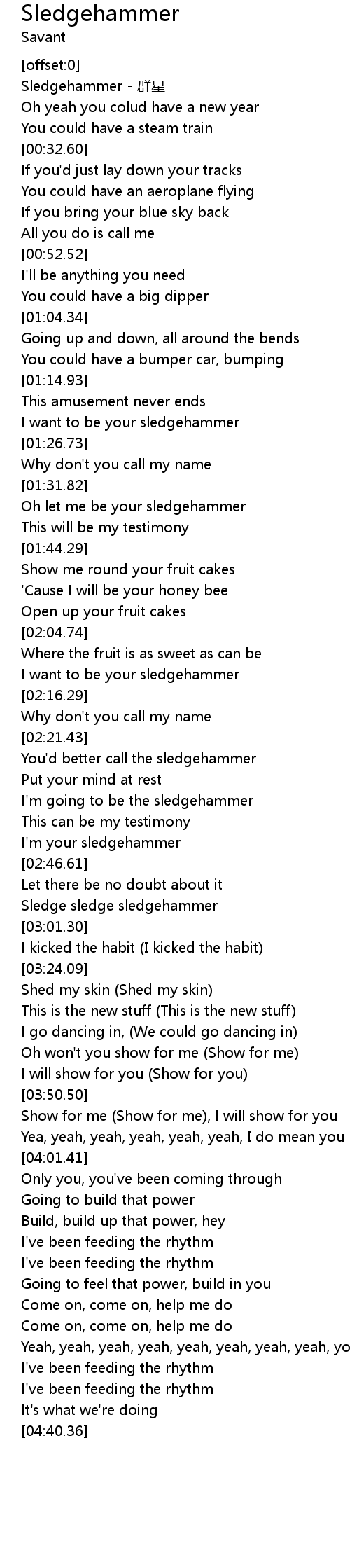 | [02:51.56] | Sledge sledge sledgehammer |