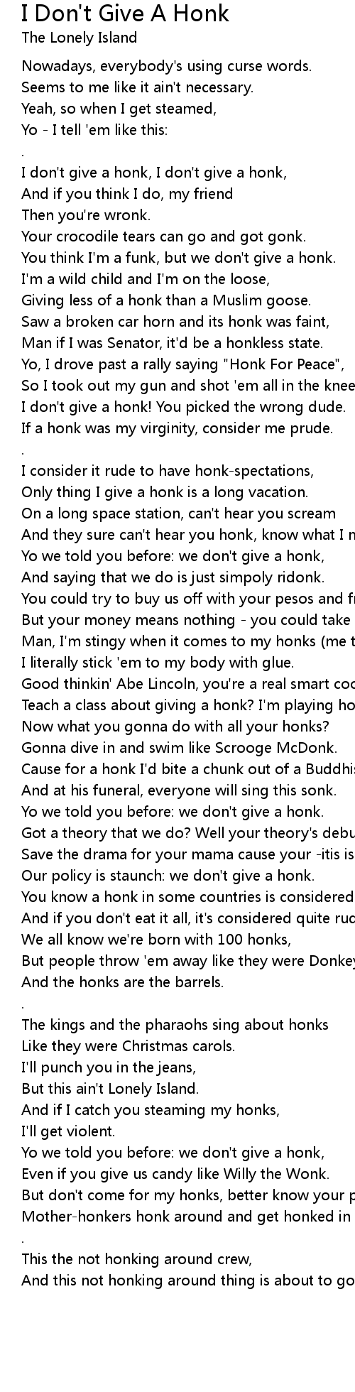 Cause for a honk I'd bite a chunk out of a Buddhist monk, |