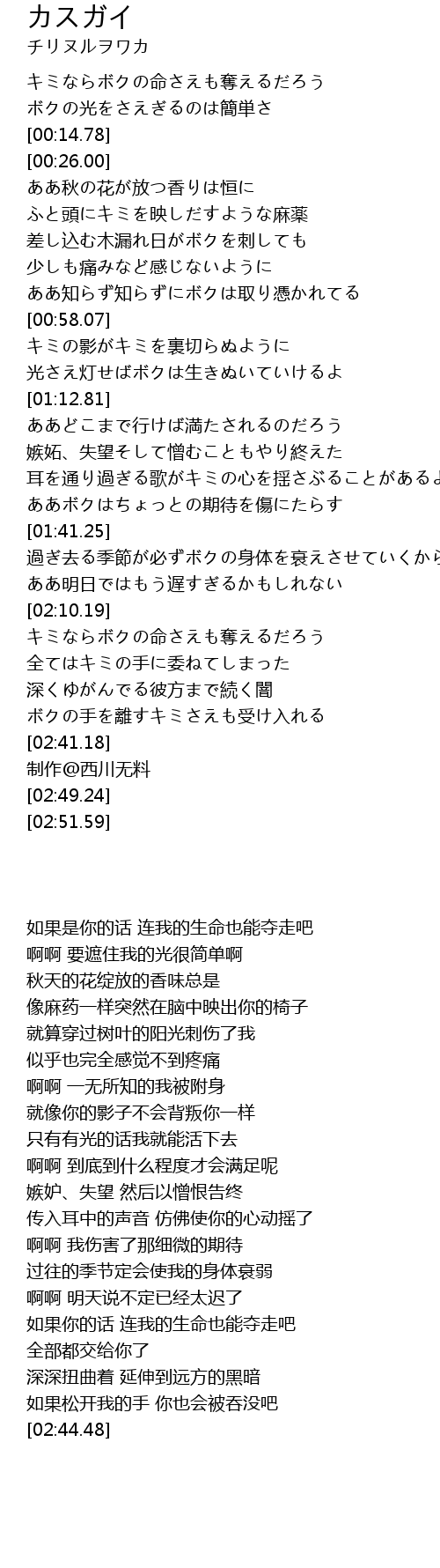 | [02:12.75] | キミならボクの命さえも奪えるだろう |
