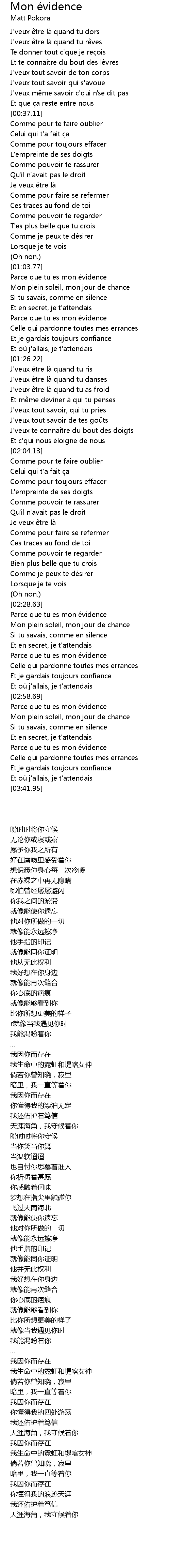 | [03:17.80] | Parce que tu es mon évidence |