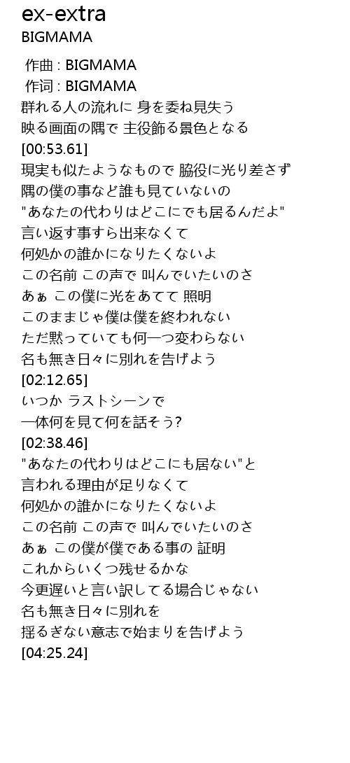 | [00:01.00] | 作词 : BIGMAMA |