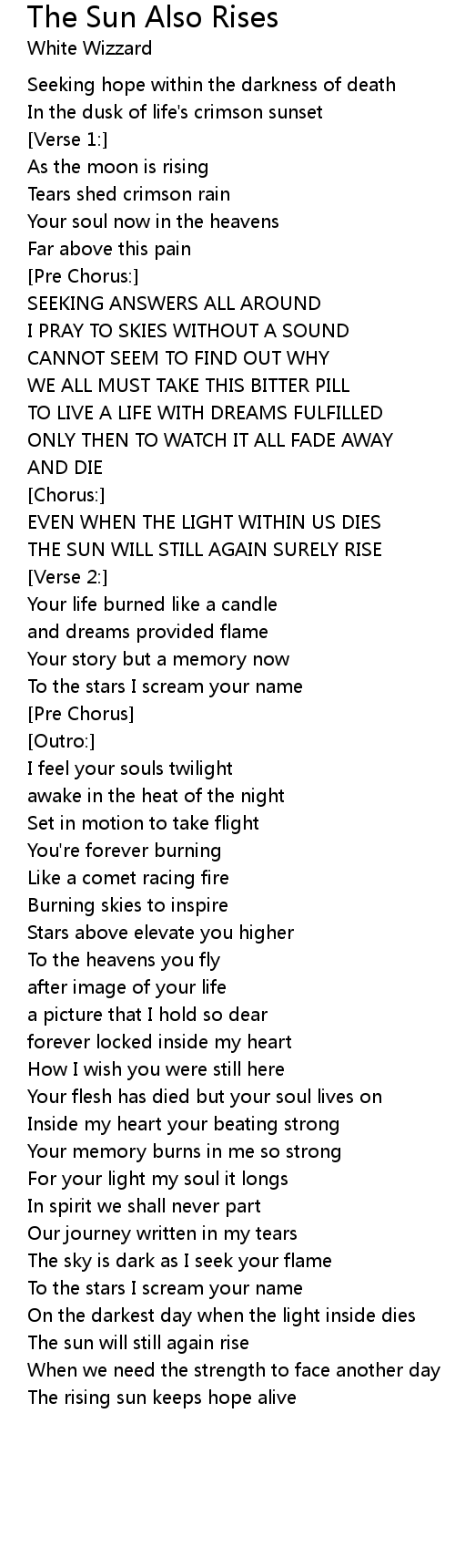 The Sun Also Rises Lyrics
