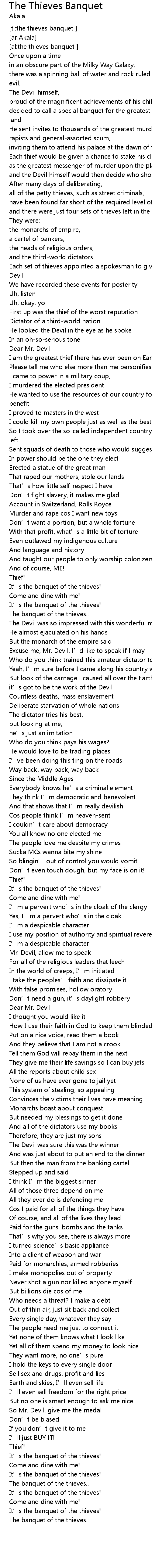 | [01:11.27] | Each set of thieves appointed a spokesman to give his case to the Devil. |