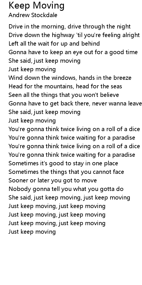 Just keep moving, just keep moving |
