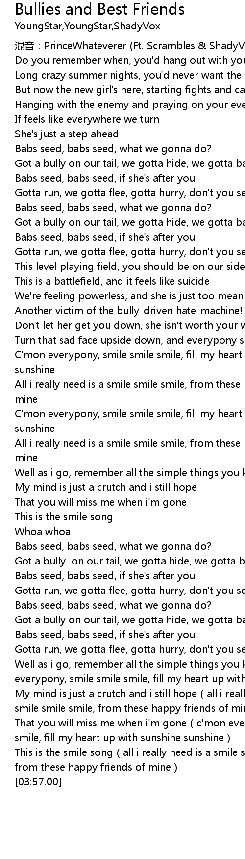 | [03:45.56] | This is the smile song all i really need is a smile smile smile, from these happy friends of mine |