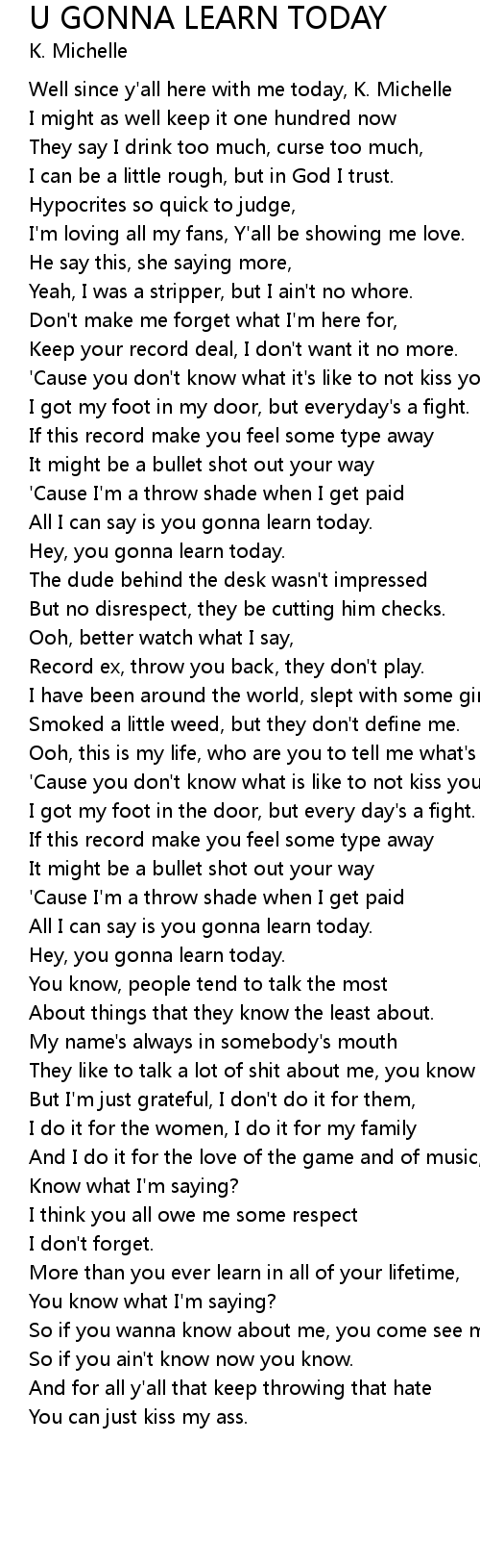 U GONNA LEARN TODAY Lyrics