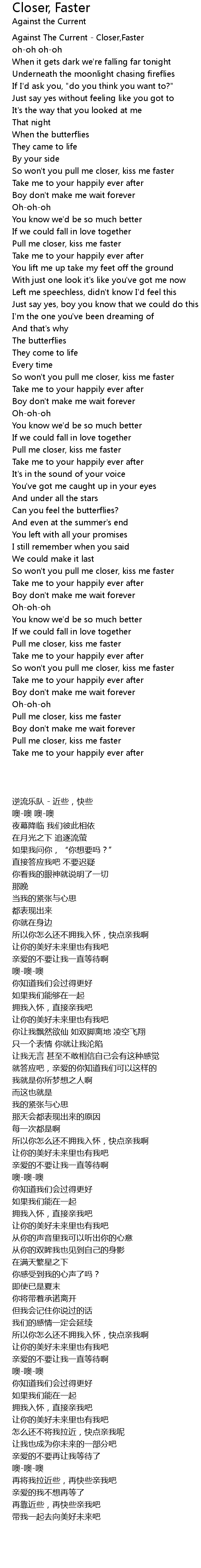 Pull me closer, kiss me faster |