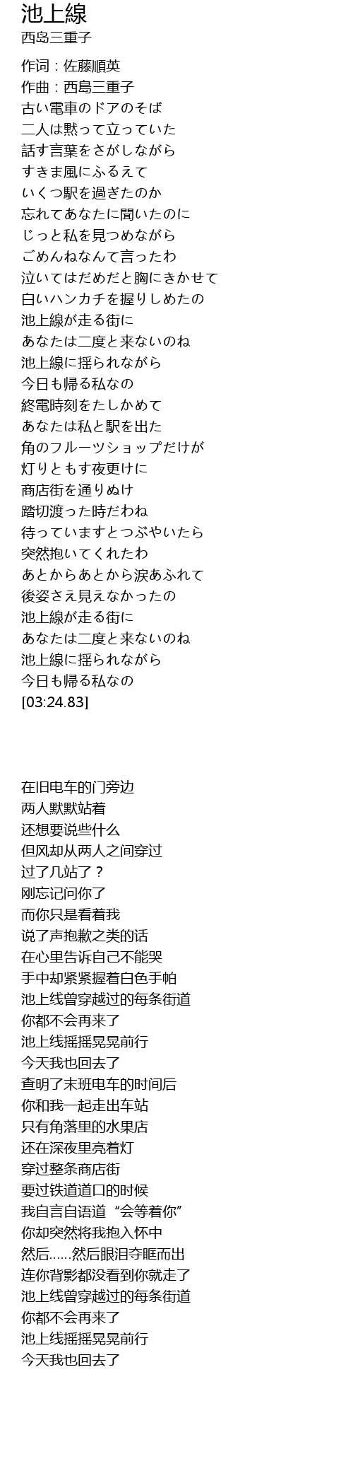 | [03:08.87] | 池上線に揺られながら |