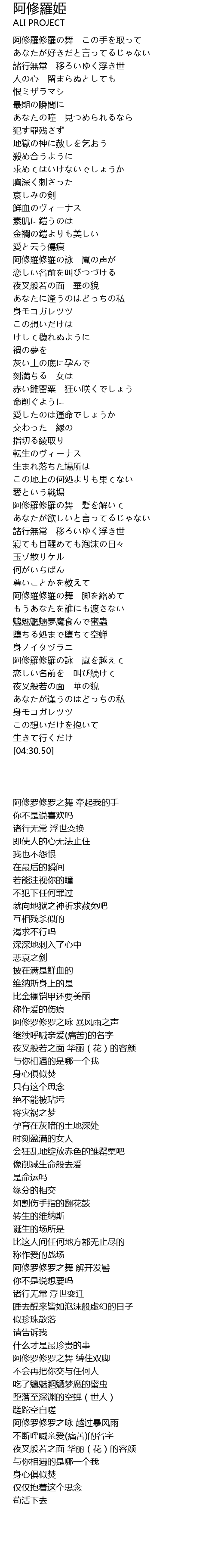 | [03:58.54] | ā xiū luó xiū luó yǒng lán yuè |