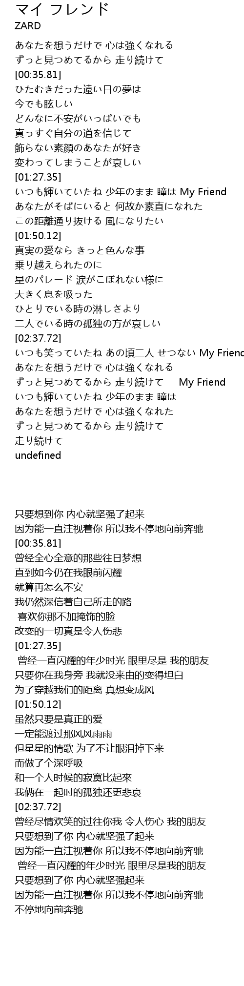 | [02:38.35] | いつも笑っていたね あの頃二人 せつない My Friend |