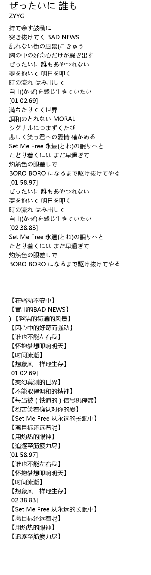| [02:57.97] | BORO BORO になるまで駆け抜けてやる |