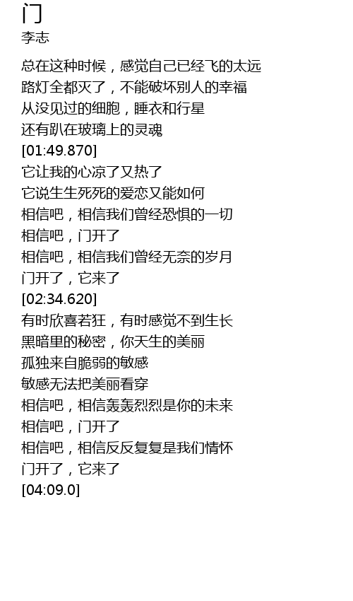 | [03:47.260] | xiāng xìn ba, mén kāi le |