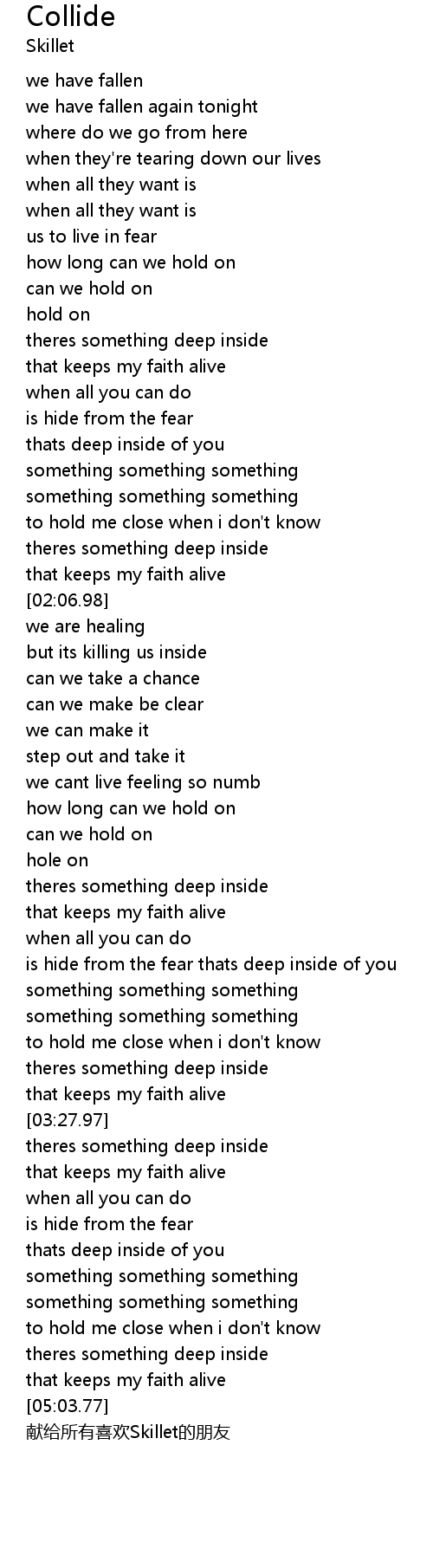 | [05:05.77] | 献给所有喜欢Skillet的朋友 |