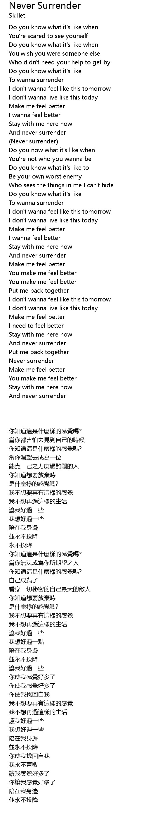 (Never surrender) |