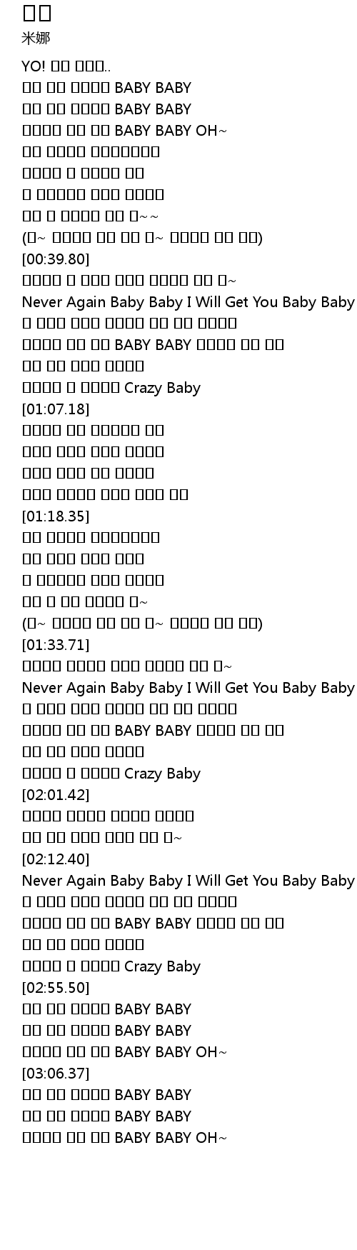 | [01:04.73] | 미치도록 널 만들거야 Crazy Baby |