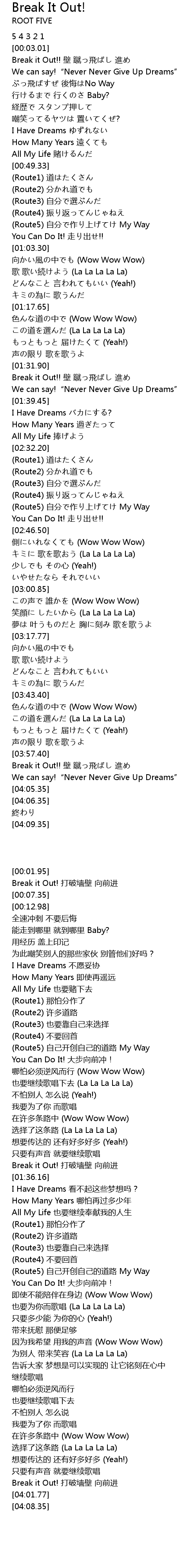 | [03:58.12] | Break it Out!! bi cu fei jin |