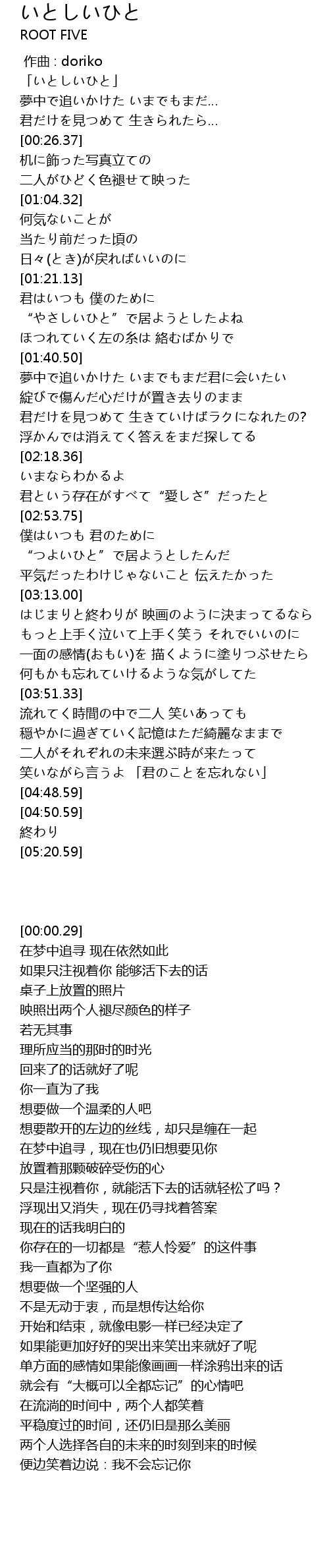 | [04:19.77] | 穏やかに過ぎていく記憶はただ綺麗なままで |