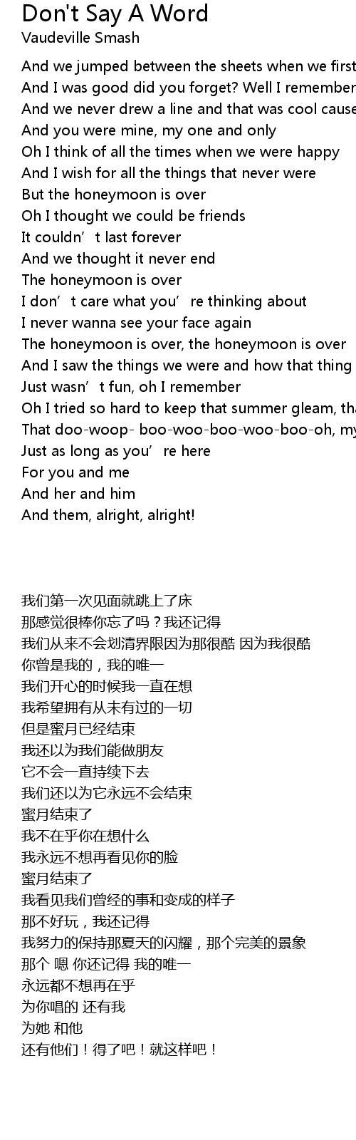 | [01:05.490] | The honeymoon is over, the honeymoon is over |