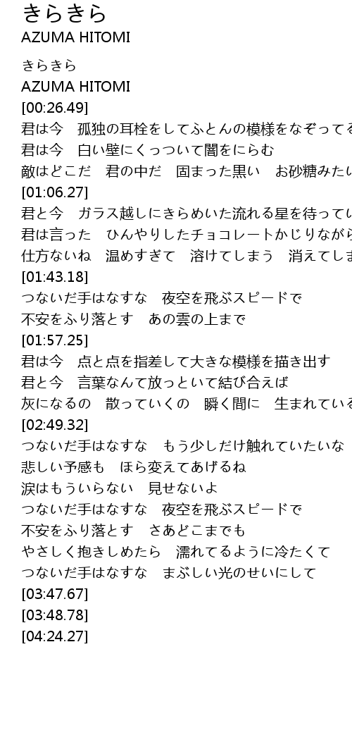 | [02:49.84] | つないだ手はなすな もう少しだけ触れていたいな |