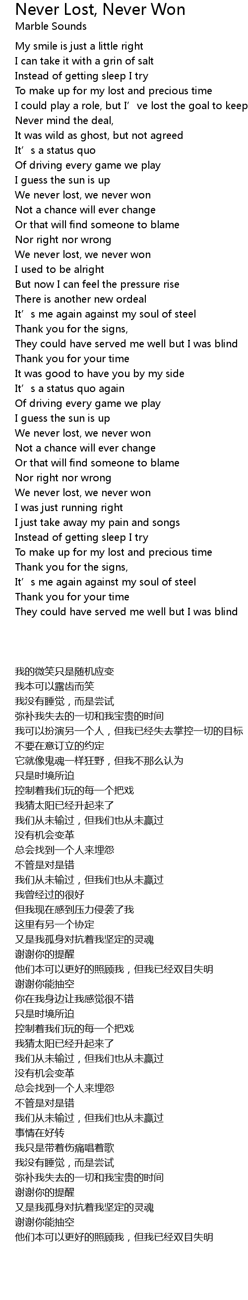 | [02:31.04] | We never lost, we never won |