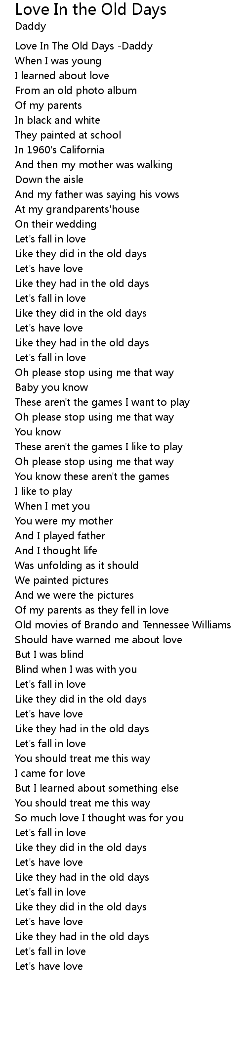 Love In The Old Days -Daddy |
