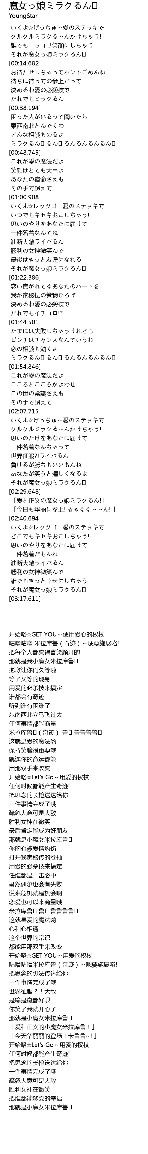 | [03:14.980] | それが魔女っ娘ミラクるん♪ |