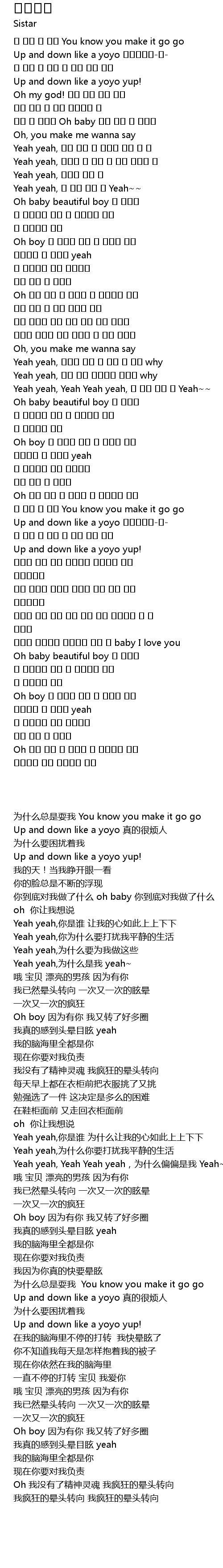 | [02:20.300] | Up and down like a yoyo 피곤하게요-요- |