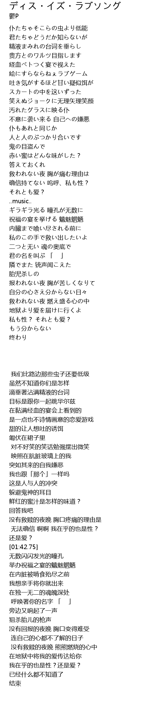 | [00:44.44] | 経血ベトつく宴で视えた |